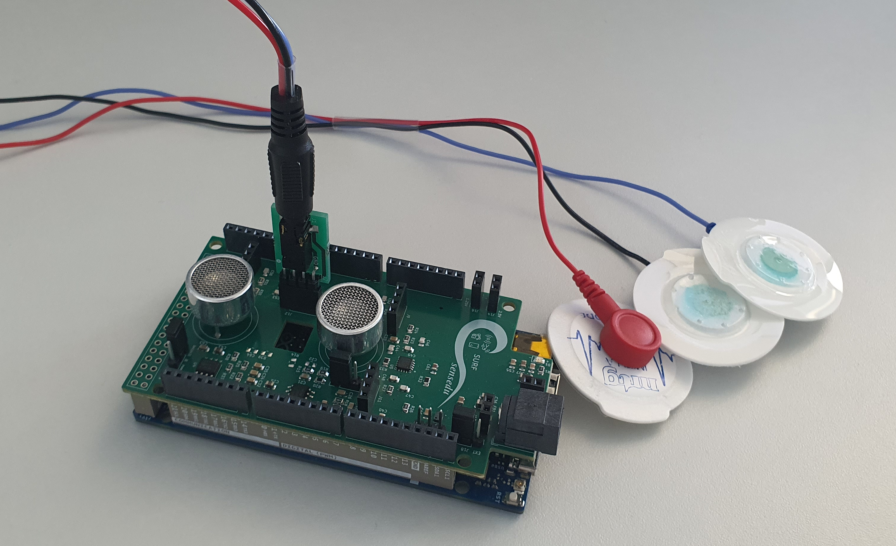 After connecting the electrodes using the MiniJack2Jumper adapter, the final setup looks as follows: